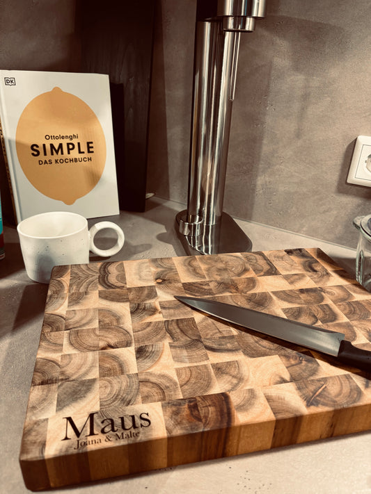 Personalisiertes Tranchierbrett (massiv) mit Laser Gravur