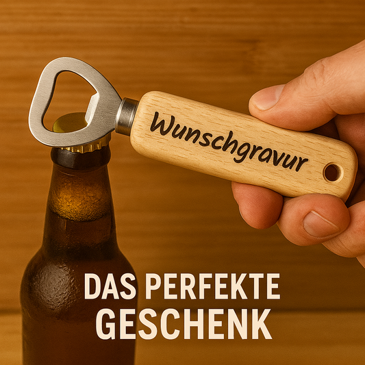 Personalisierter Flaschenöffner Holz mit Laser Gravur