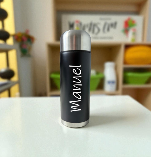 Thermosflasche Edelstahl Schwarz mit Laser Gravur